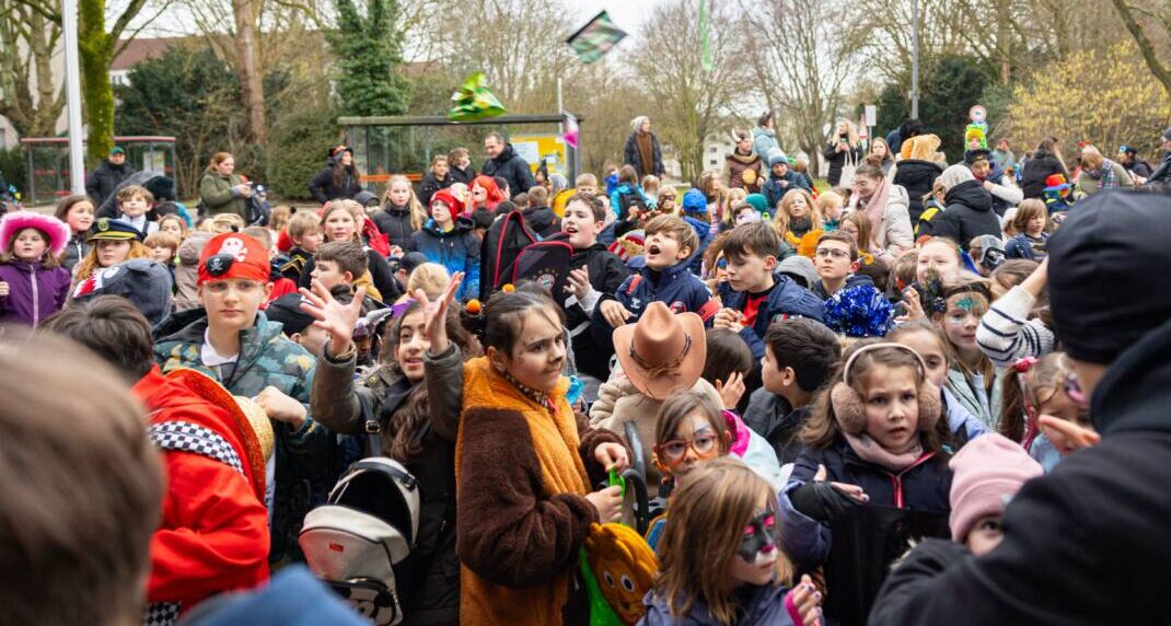 Trotz des winterlichen Februarwetters ließen sich die jungen Jecken und ihre Begleitungen nicht bremsen. Mit Trommeln, Rasseln und Gesang brachten sie ein Stück Straßenkarneval direkt vor die Türen der VBW. Mitarbeitende sowie Anwohner freuten sich über die fröhliche Atmosphäre rund um die Hauptverwaltung.